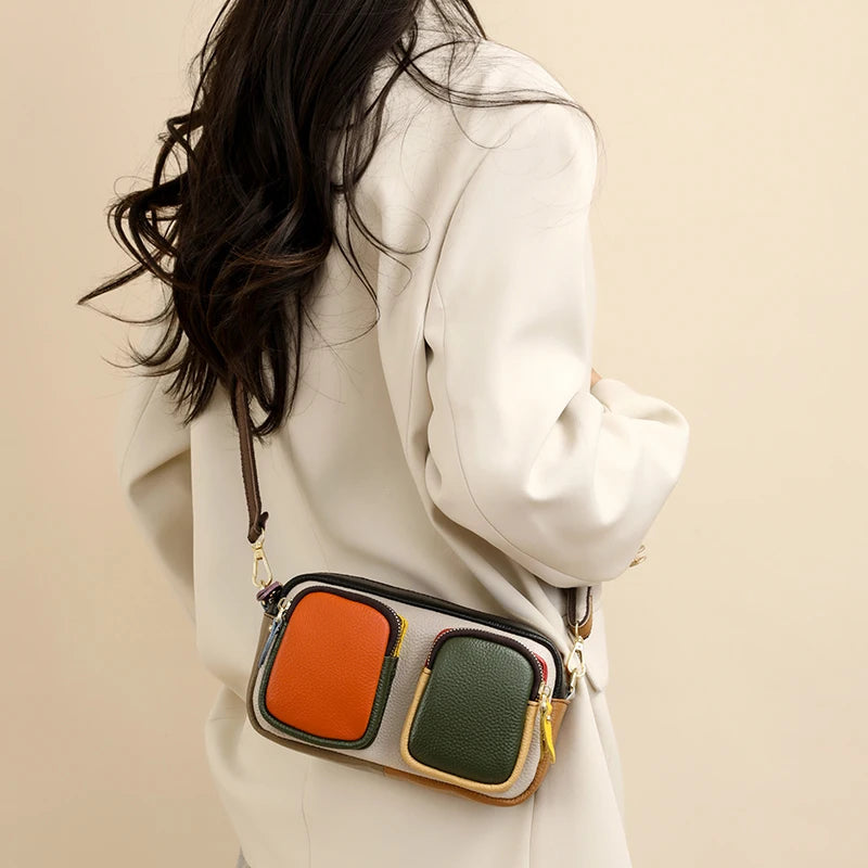 Dank mehrerer Fächer lassen sich Essentials wie Handy, Geldbörse, Schlüssel, Make-up und kleine Accessoires geordnet verstauen. So bleibt alles griffbereit und übersichtlich – perfekt für unterwegs.