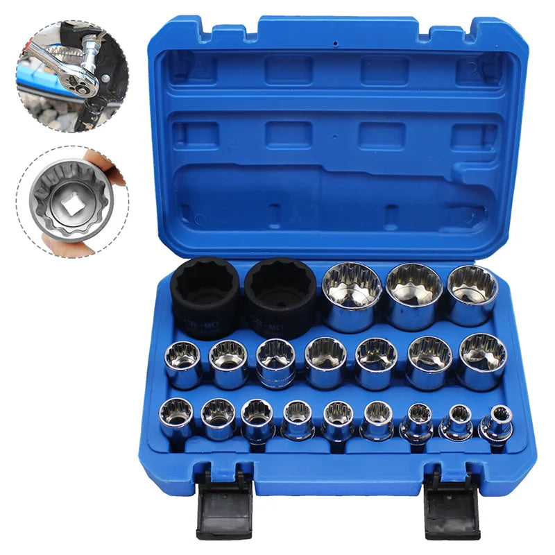21-teiliges Steckschlüssel Set mit Ratsche 12-Kant Plum Kurz Nuss Tragbares Auto Reparatur Werkzeug