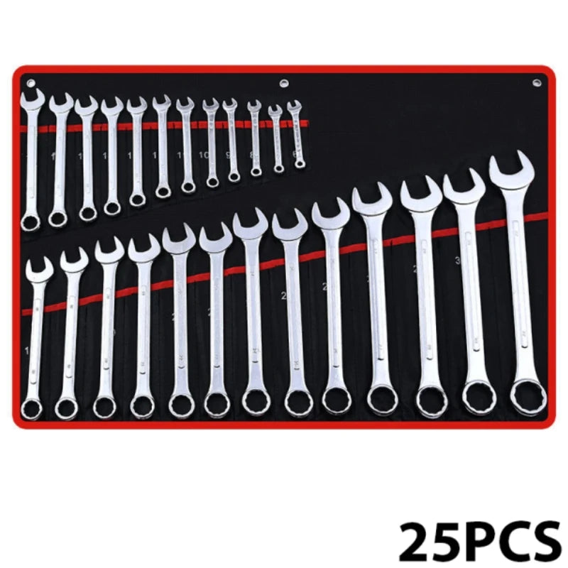 25-teiliges Dual-Ratschen Schraubenschlüssel Set 6-32mm mit Torx & Canvas Werkzeugtasche