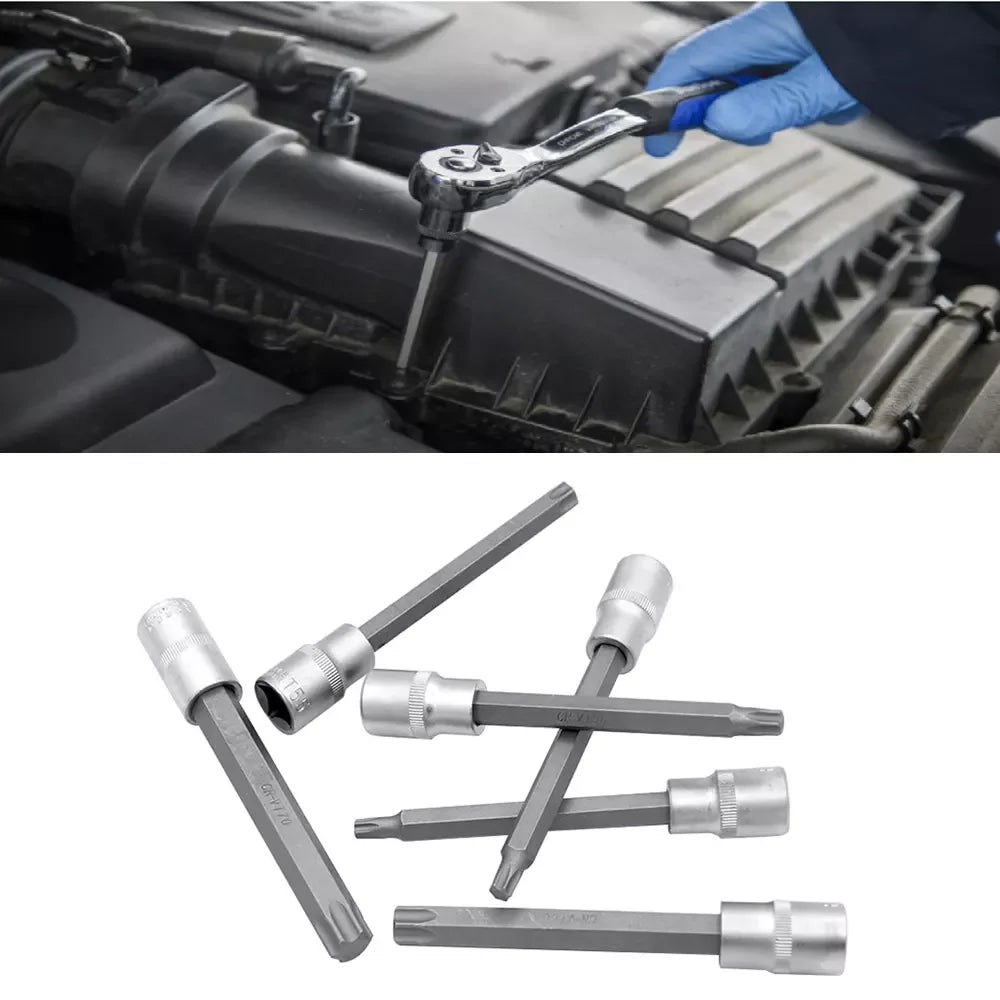 Enthält verschiedene Torx-Bits und Stecknüsse für vielseitige Anwendungen im Fahrzeug- und Maschinenbereich.