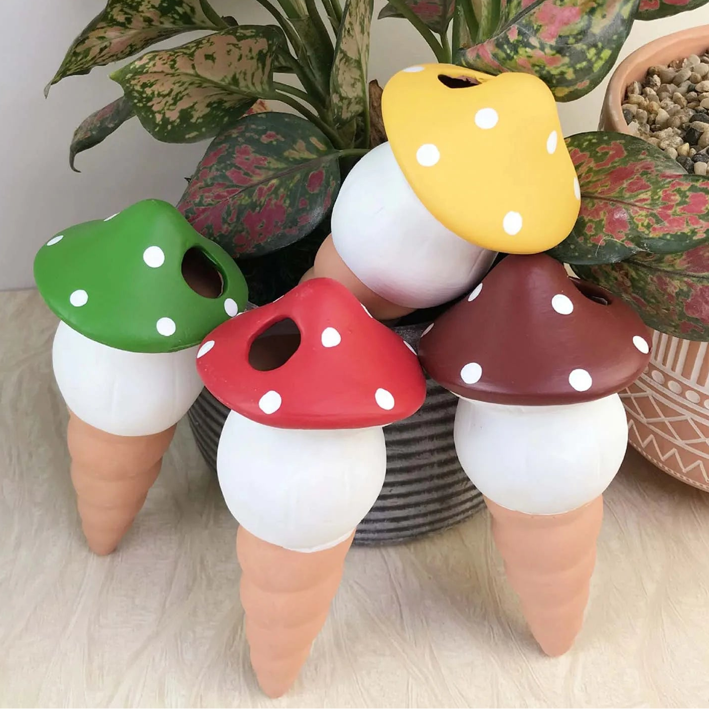 4 Stück Pilz Bewässerungsstäbe – Bunte Automatische Selbstbewässerungsgeräte | Tropfbewässerung für Innen- & Außenpflanzen