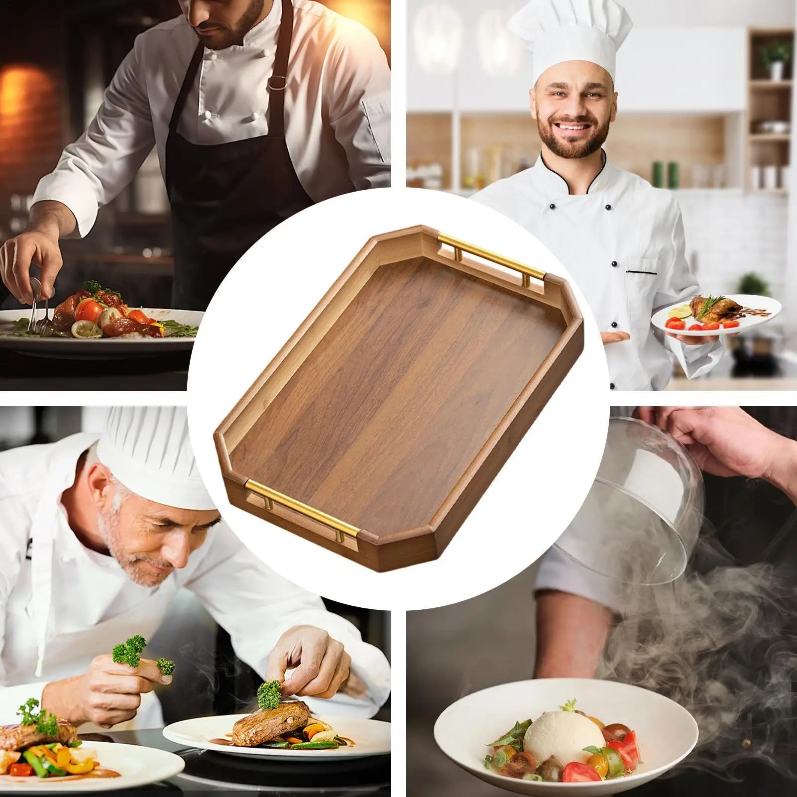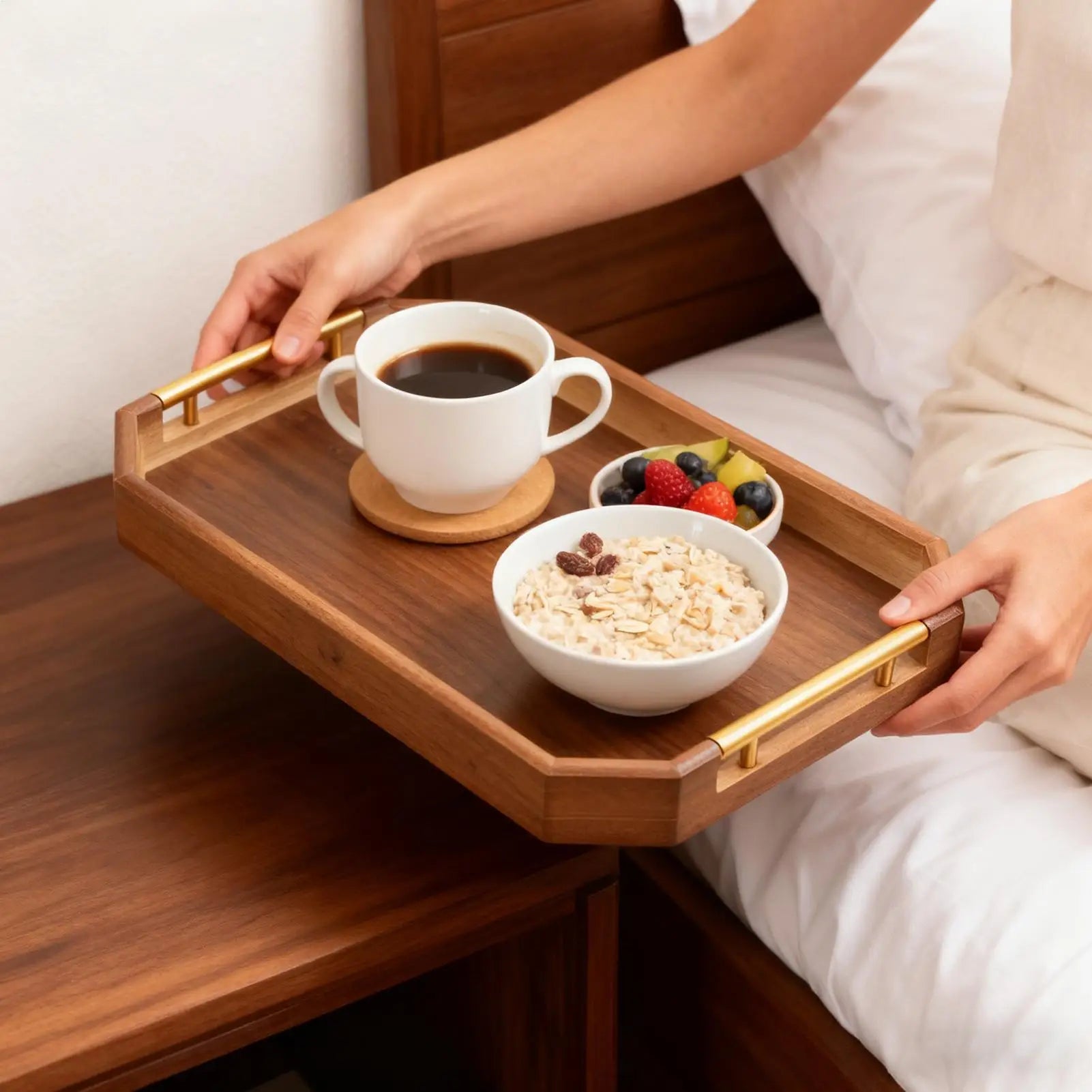 Achteckiges Holz-Serviertablett mit Griffen – Auslaufsicheres Frühstücks-im-Bett-Tablett für Couchtisch, Barwagen & Farmhouse-Deko