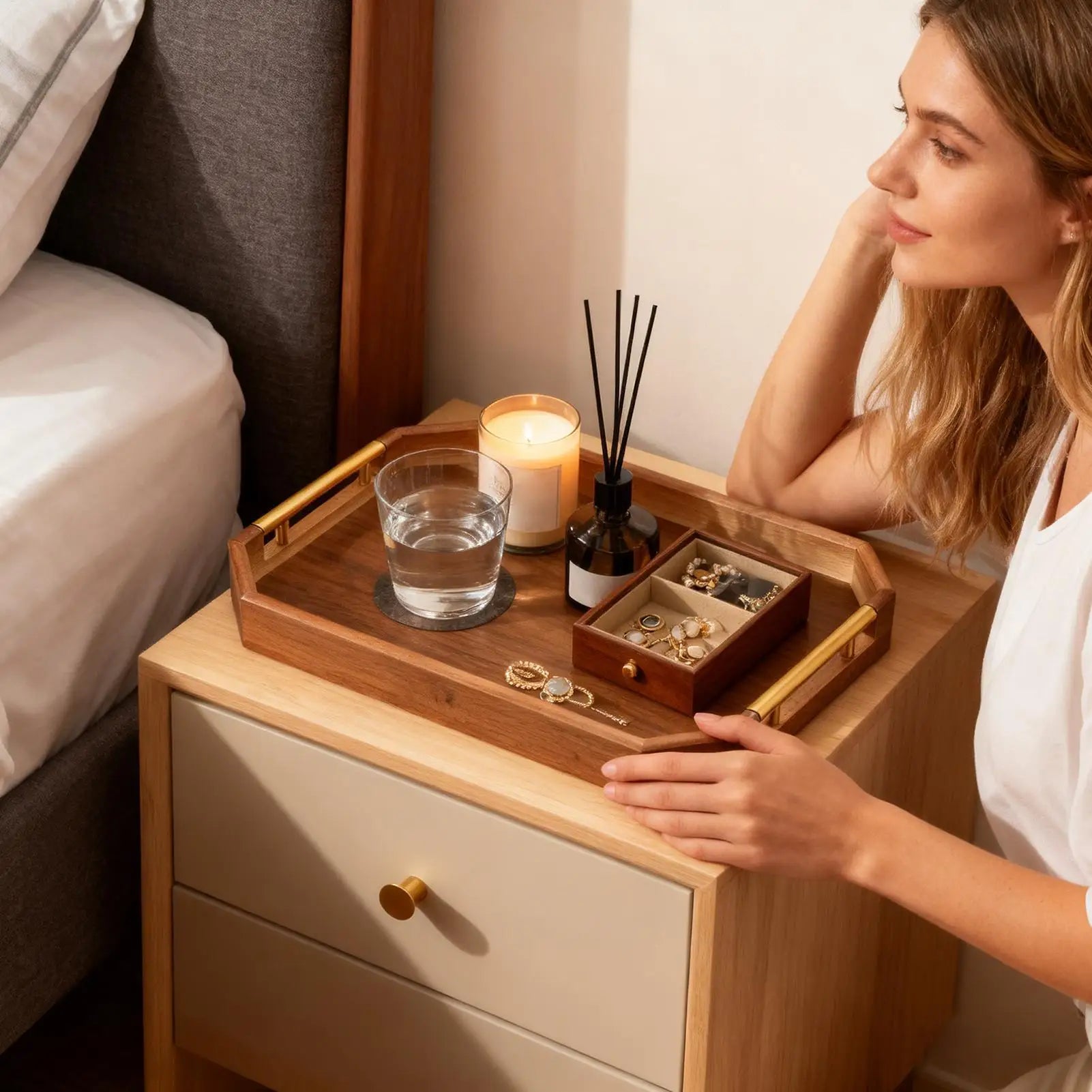 Gefertigt aus robustem Massivholz bietet das Tablett hohe Stabilität und Langlebigkeit. Die natürliche Holzmaserung verleiht jedem Stück einen individuellen Charakter.