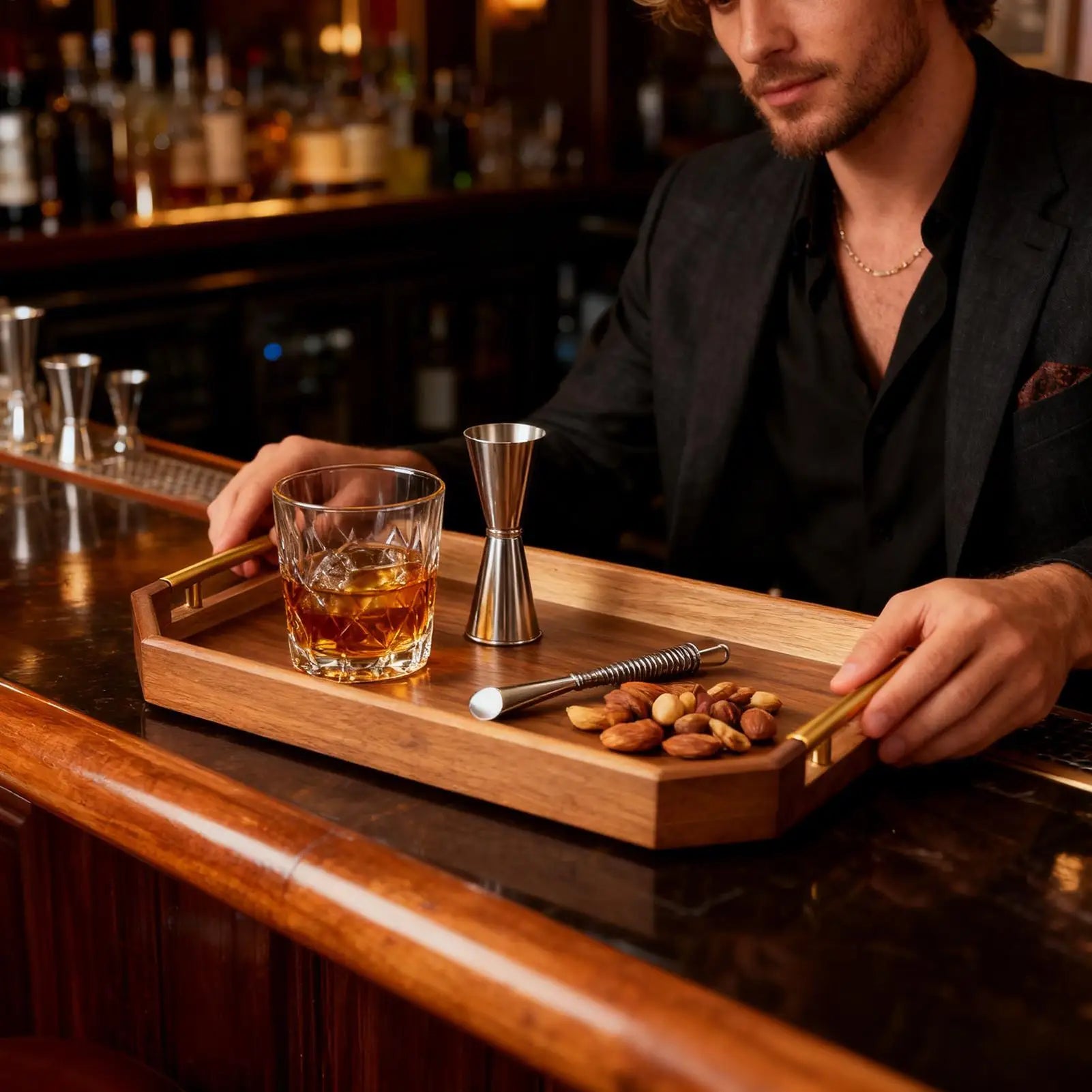 Ein stilvolles Accessoire für Barwagen, Kücheninseln oder Sideboards – perfekt zum Servieren von Getränken oder Snacks.