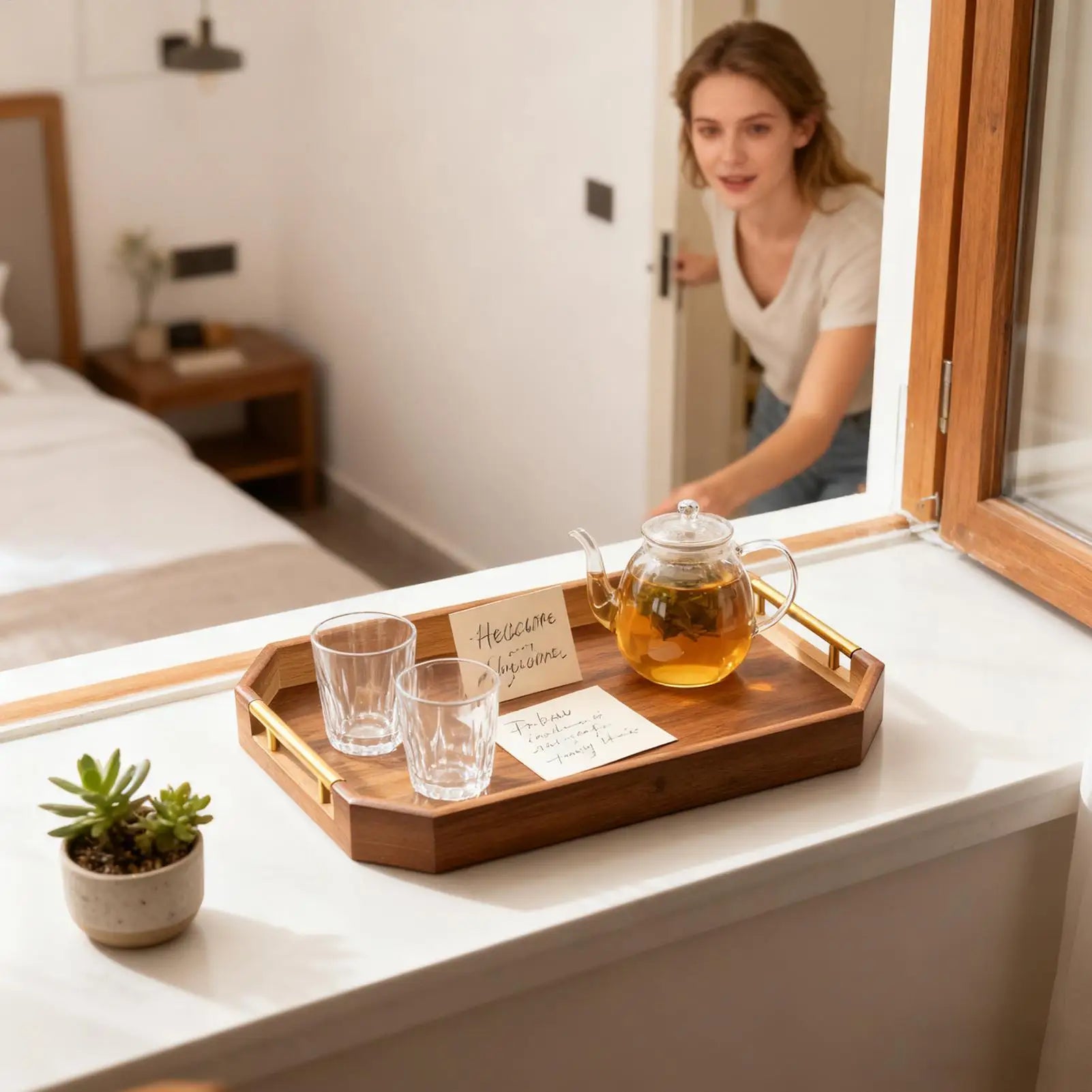 Die warme Holzoptik und klassische Form machen das Tablett zu einem harmonischen Element in Farmhouse-, Landhaus- und modernen Einrichtungen.