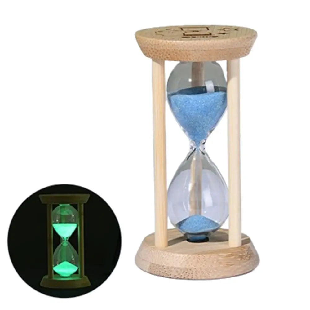 Bambus Leuchtende Sanduhr – Kreativer Fluoreszierender Glas Timer mit Naturrahmen