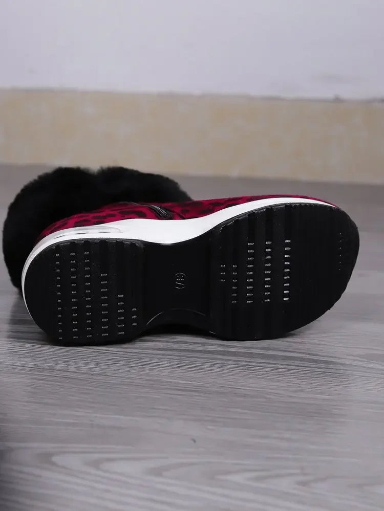 Diese Plateau Schneestiefel für Damen vereinen modischen Stil mit funktionaler Wärme. Das Kunstfell-Futter und das Kunst-Wildleder-Obermaterial sorgen für ein weiches Tragegefühl und einen modernen Look – ideal für kalte Wintertage.