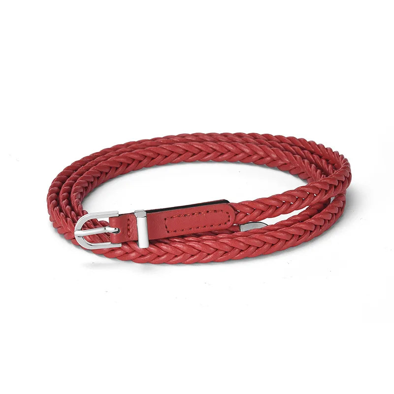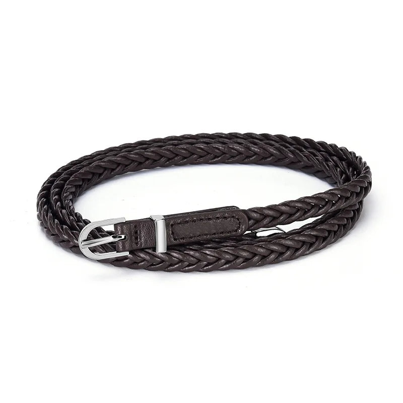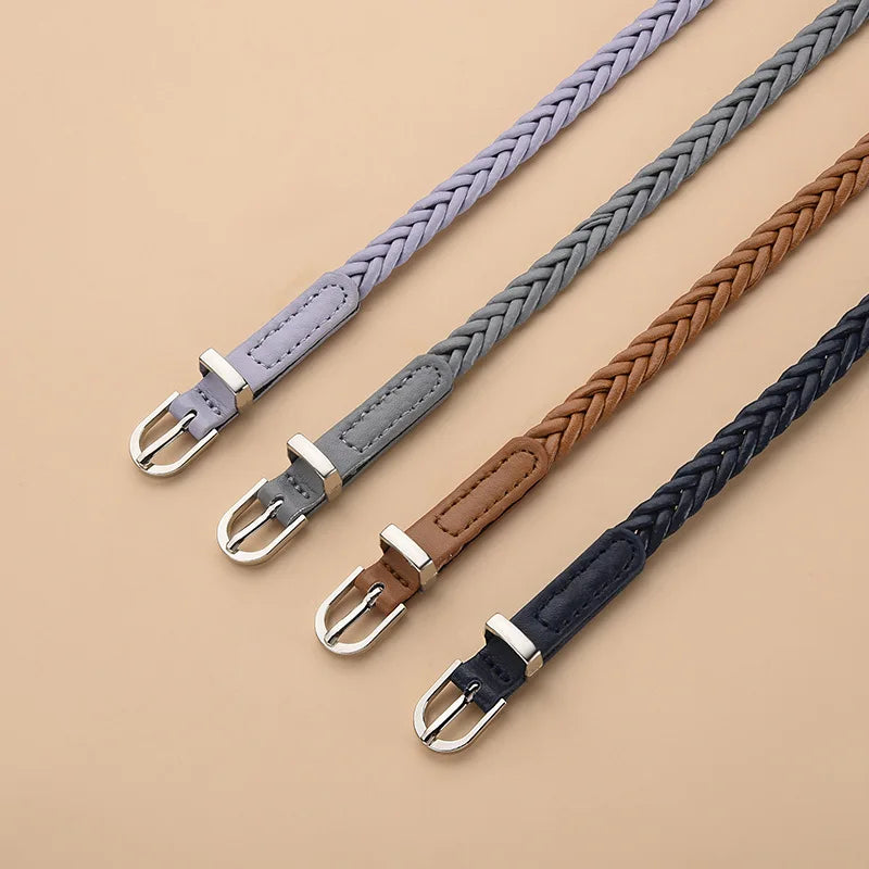 Dieser dünne Damen Gürtel aus geflochtenem PU-Leder vereint klassische Eleganz mit Gothic-Retro-Charme. Perfekt zu Kleidern, Jeans oder Röcken – ein vielseitiges Accessoire für stilbewusste Frauen.