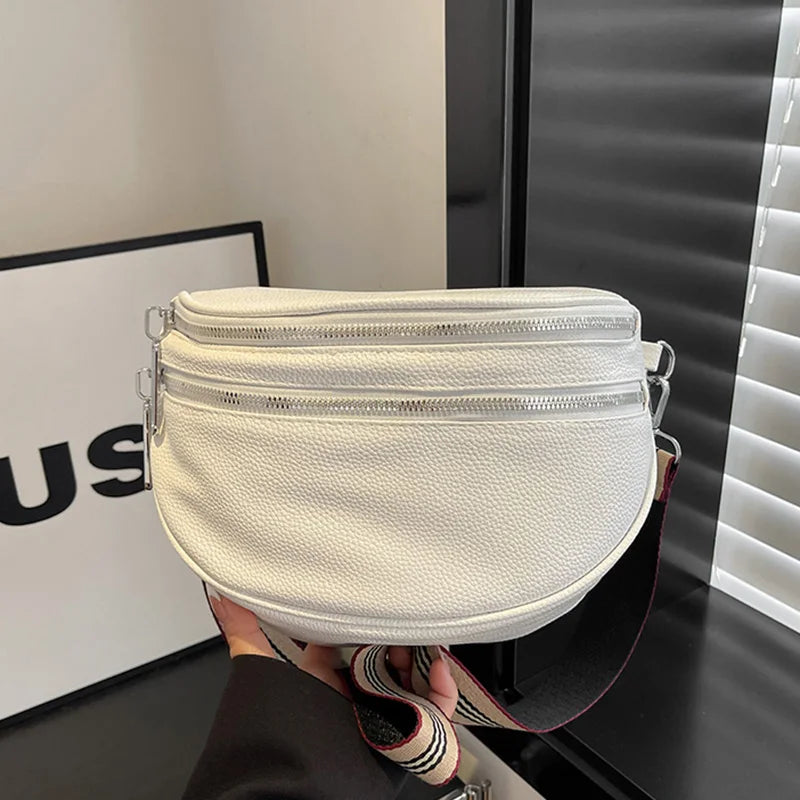 Der breite, bestickte Riemen sorgt nicht nur für hohen Tragekomfort, sondern setzt auch ein trendiges Fashion-Statement. Dank verstellbarer Länge kann die Tasche bequem crossbody oder über die Schulter getragen werden.