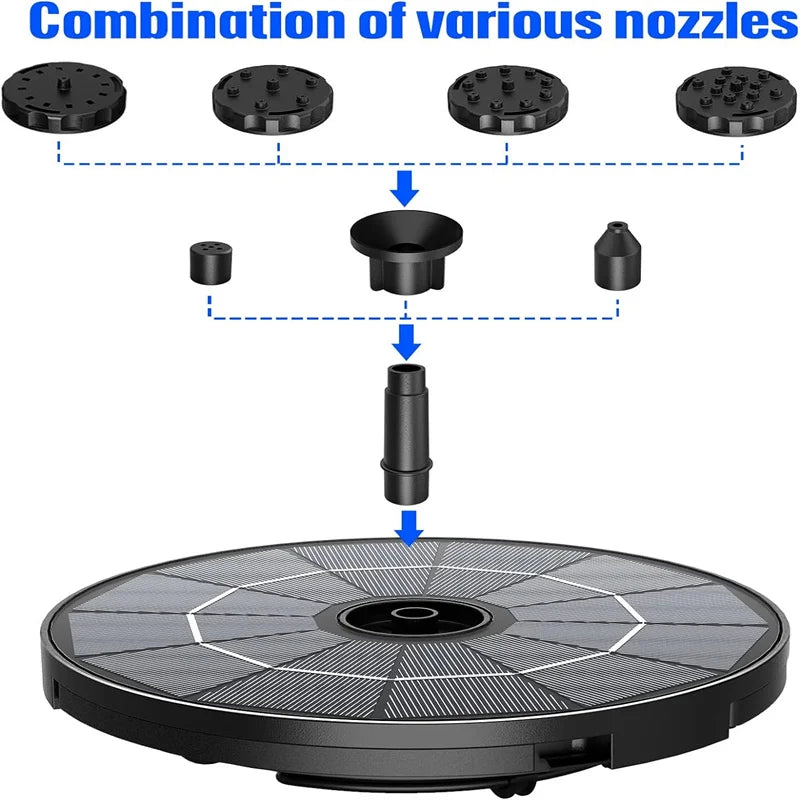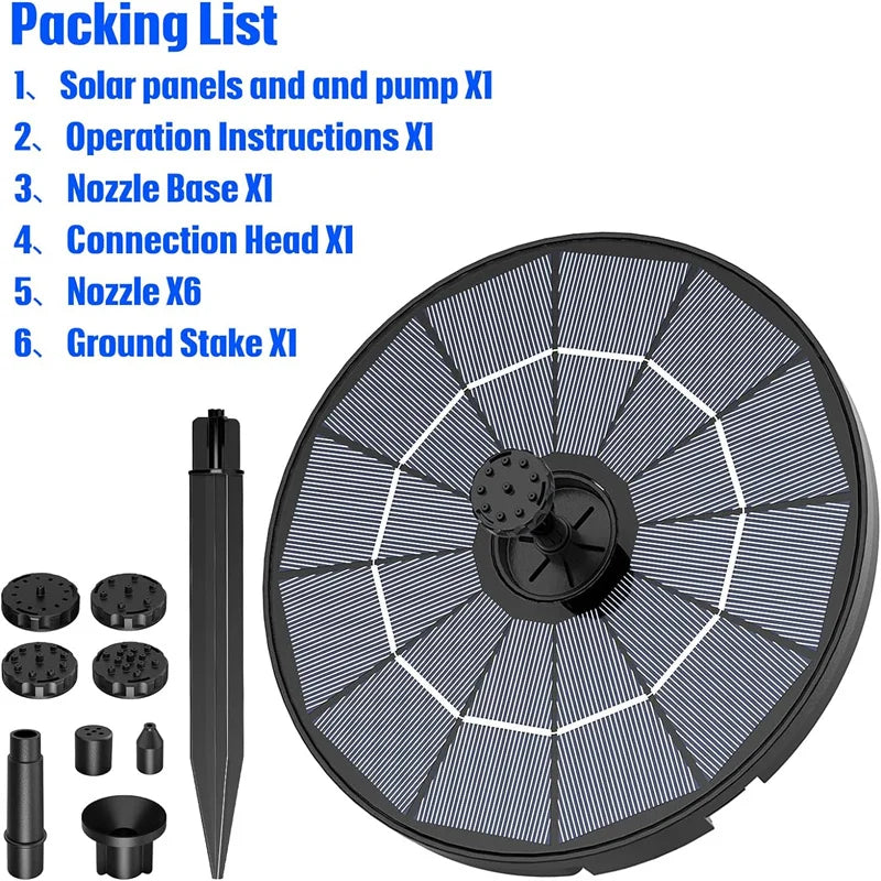 Solar-Wasserbrunnenpumpe mit 1,2m Kabel – Solarbetriebene Vogelbad-Fontäne mit 6 Düsen | Für Garten, Teich & Outdoor-Dekoration