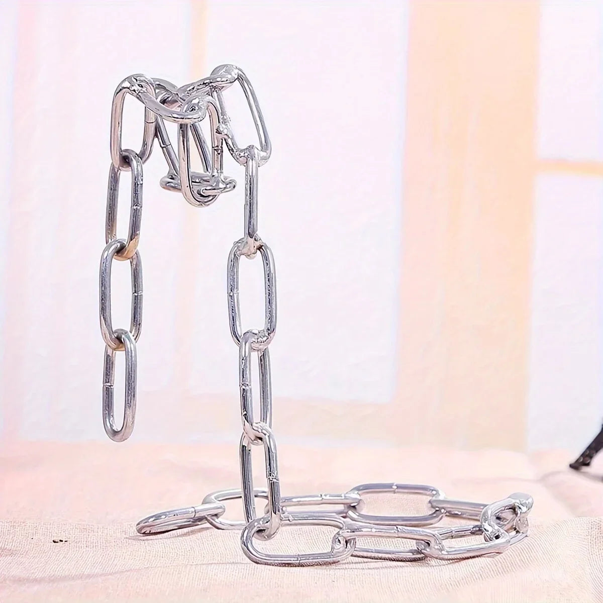 Die verflochtenen Eisenketten erzeugen eine faszinierende Schwebeoptik, die jedes Interieur aufwertet und garantiert Aufmerksamkeit erregt.