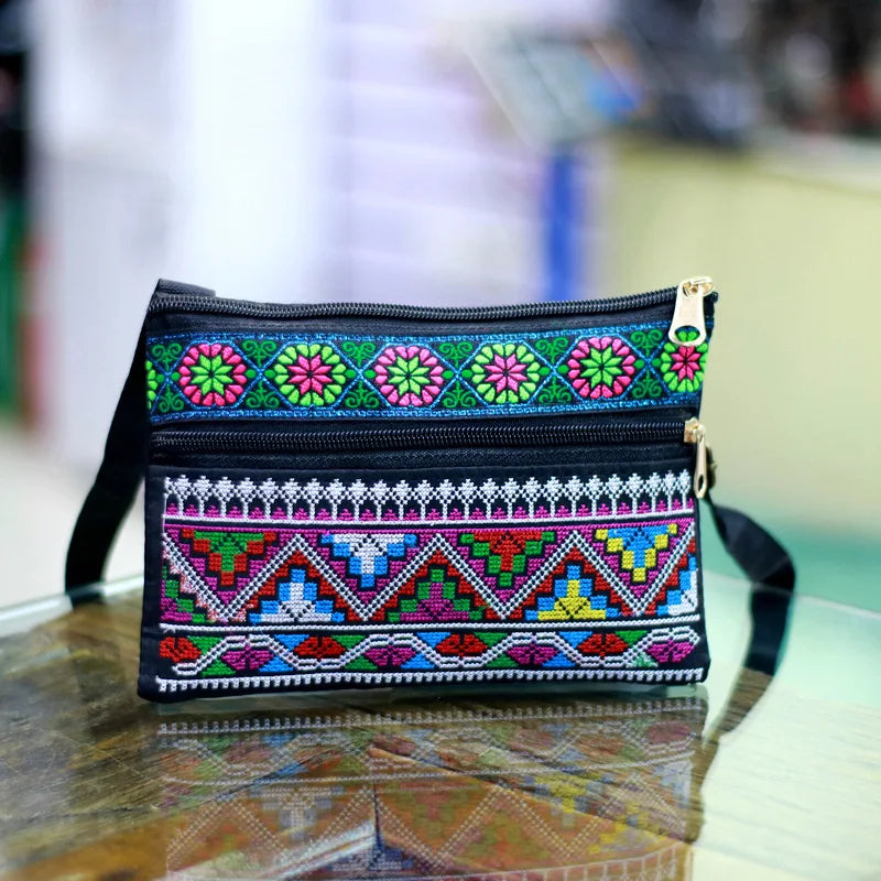 Die Ethno-Stil bestickte Umhängetasche ist ein exquisites Accessoire für Damen, die kunstvolle Details im Alltag schätzen. Mit aufwendiger Stickerei, praktischem Drei-Lagen-Reißverschluss und vielseitigen Tragemöglichkeiten vereint sie Stil und Funktionalität.