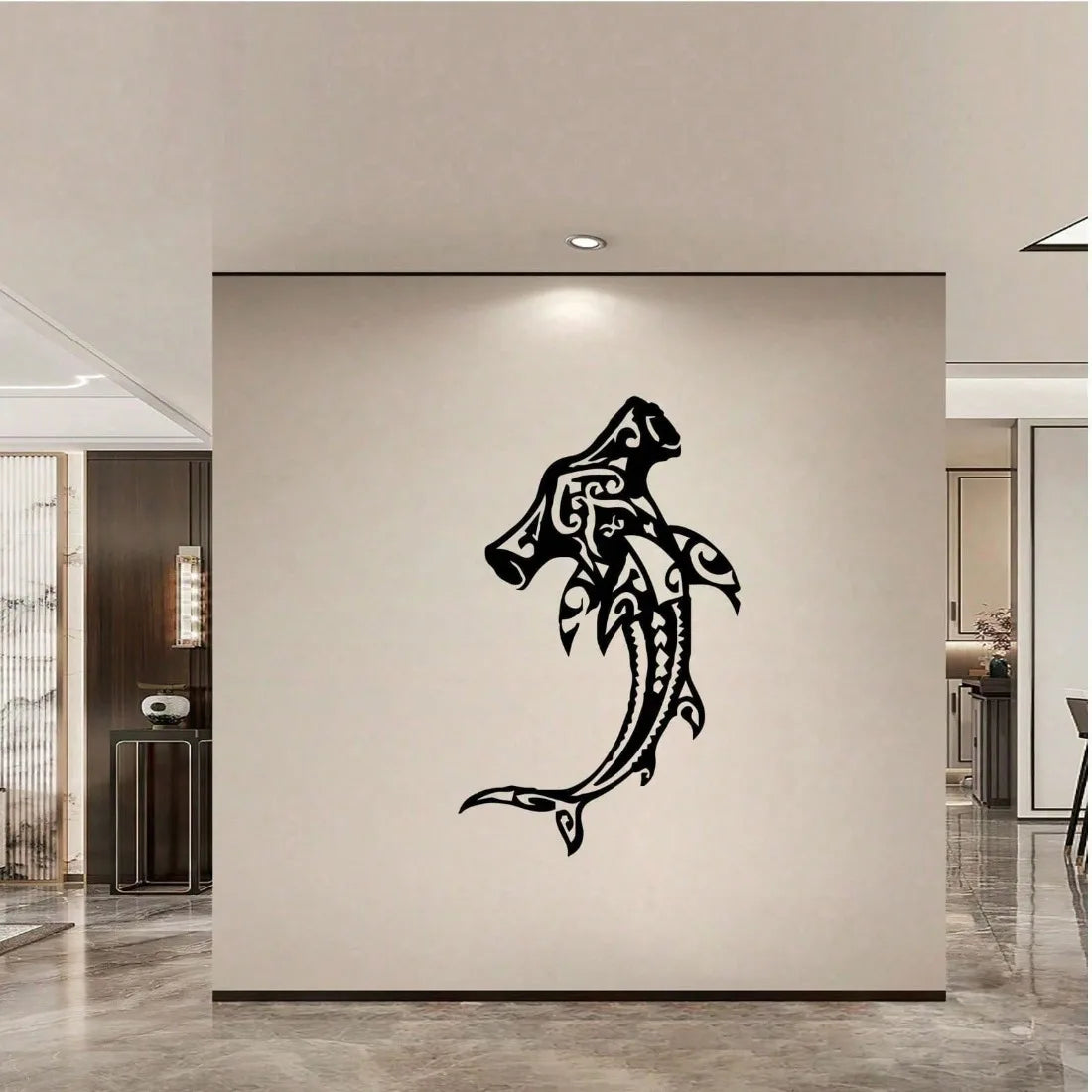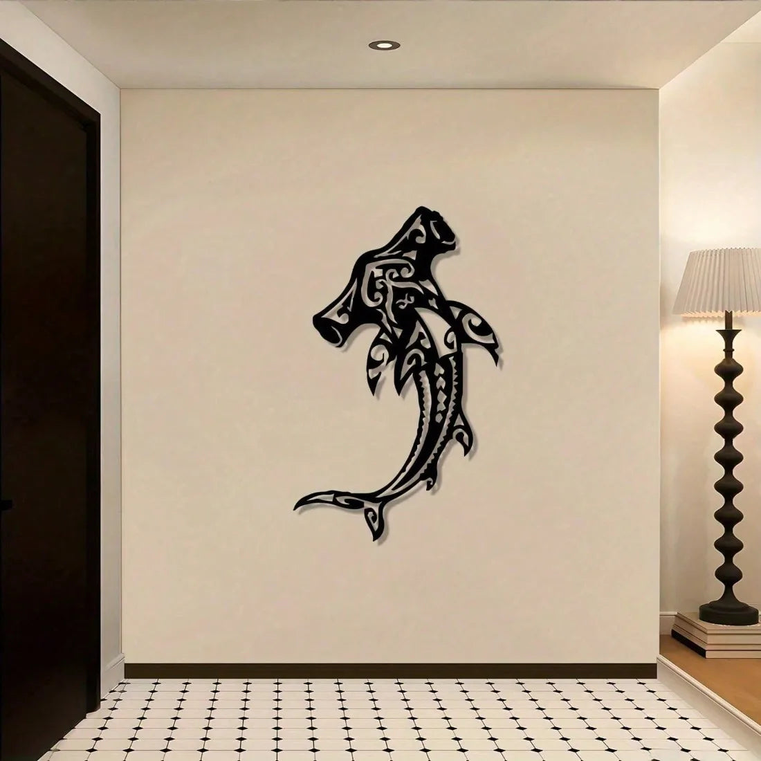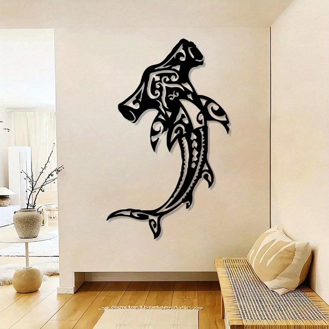 Dieses Hammerhai Metall Wandbild bringt kraftvolle Ozean-Atmosphäre in den Wohnraum.