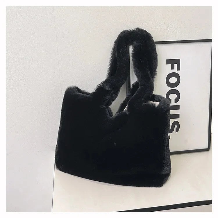 Herbst Winter Plüsch Tote Bag – Damen Modische Schultertasche | Vielseitige Ins Style Handtasche mit Laptopfach