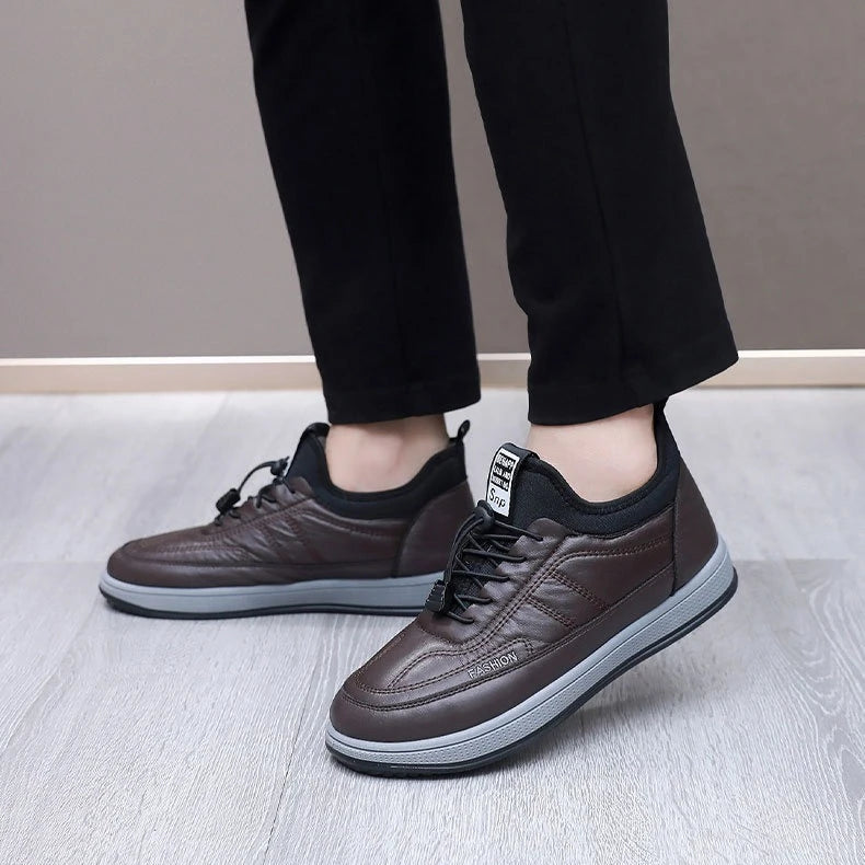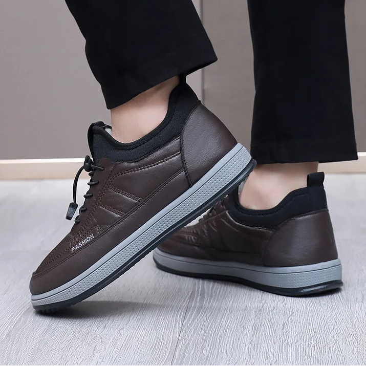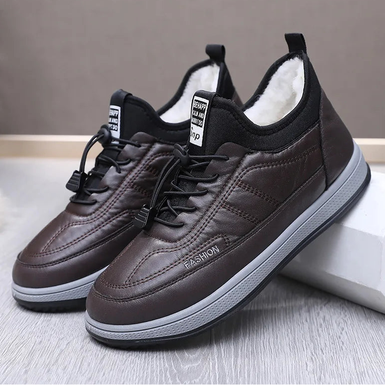 Herren Schneestiefel – Wasserdichte Winter-Lederschuhe mit Plüschfutter | Rutschfeste Warme Baumwollstiefel für Alltag & Outdoor