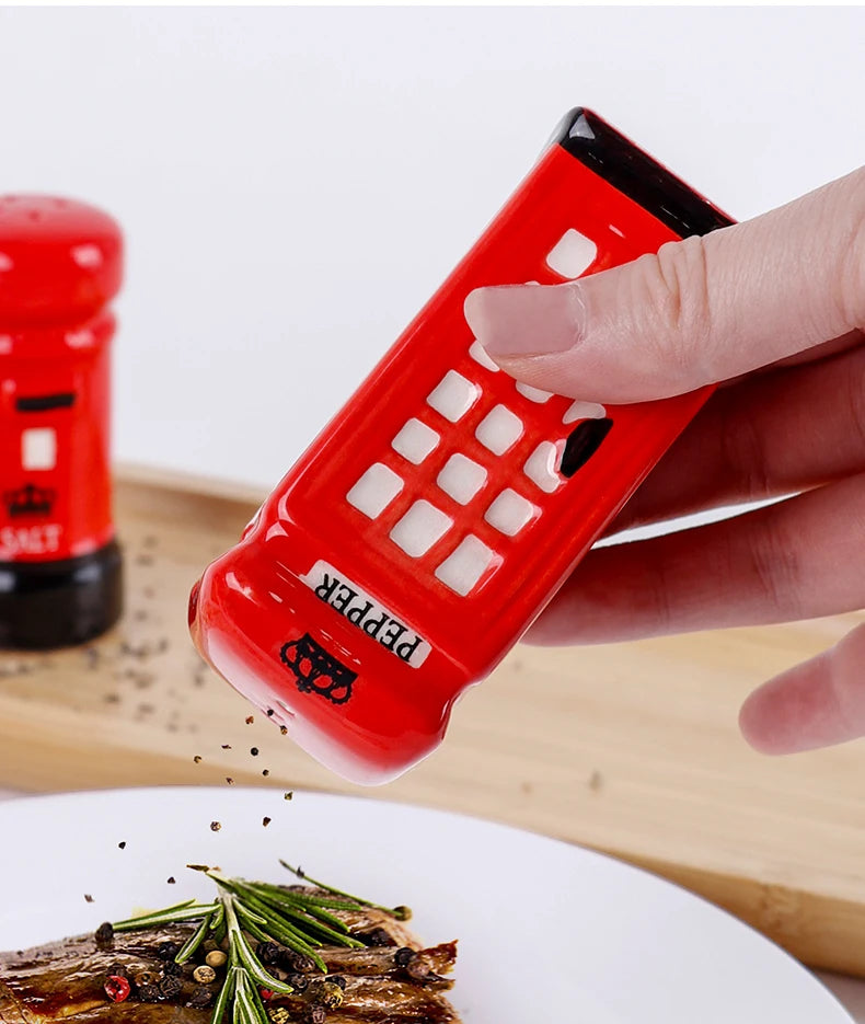 Das 2er Set Keramik Gewürzstreuer bringt Abwechslung und Kreativität in Ihre Küche. In Form einer klassischen Telefonzelle und eines Briefkastens gestaltet, vereinen sie praktischen Nutzen mit dekorativem Charme.