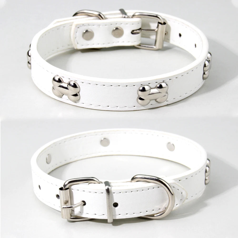 Knochen Leder Hundehalsband Strapazierfähig Verstellbar für Kleine Große Hunde Katzen Welpen
