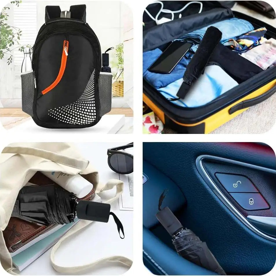 Dieser kompakte Reise-Regenschirm ist perfekt für unterwegs. Leicht, klein und äußerst tragbar – er passt problemlos in Handtaschen, Rucksäcke, Jackentaschen oder Reisetaschen.