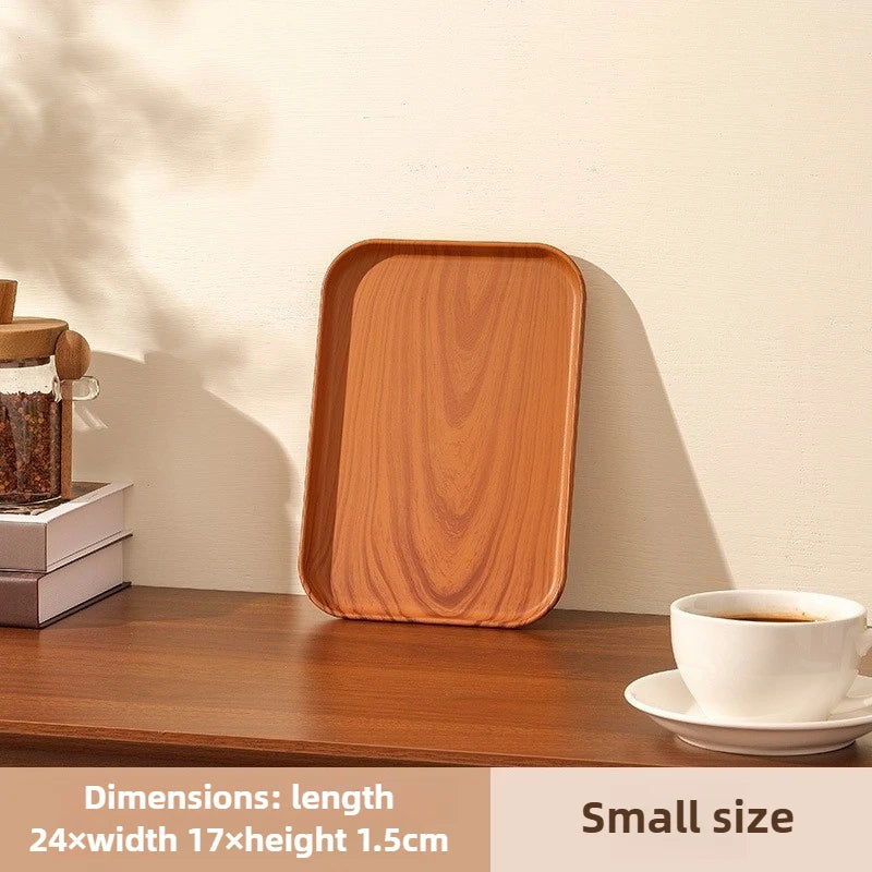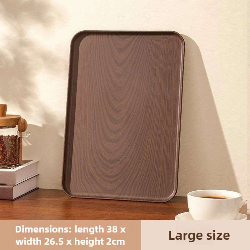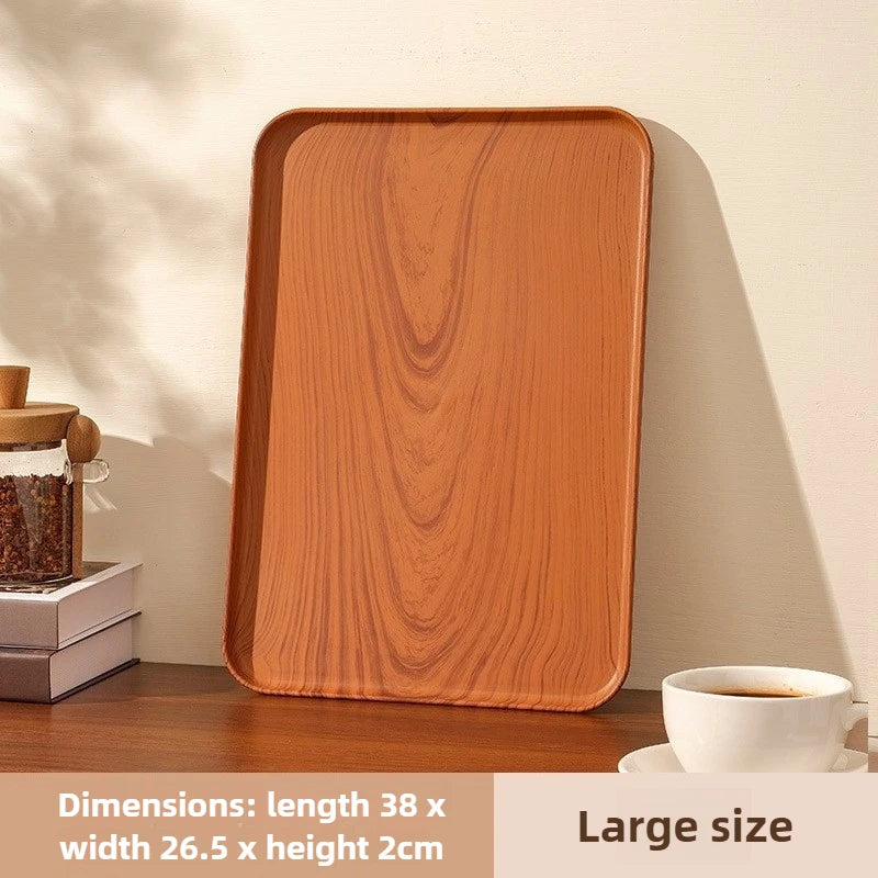 Rechteckiges Kunststoff-Serviertablett in Holzoptik – Multifunktionales Tablett für Haushalt & Gewerbe, Wasserbecher, Kuchen & Desserts