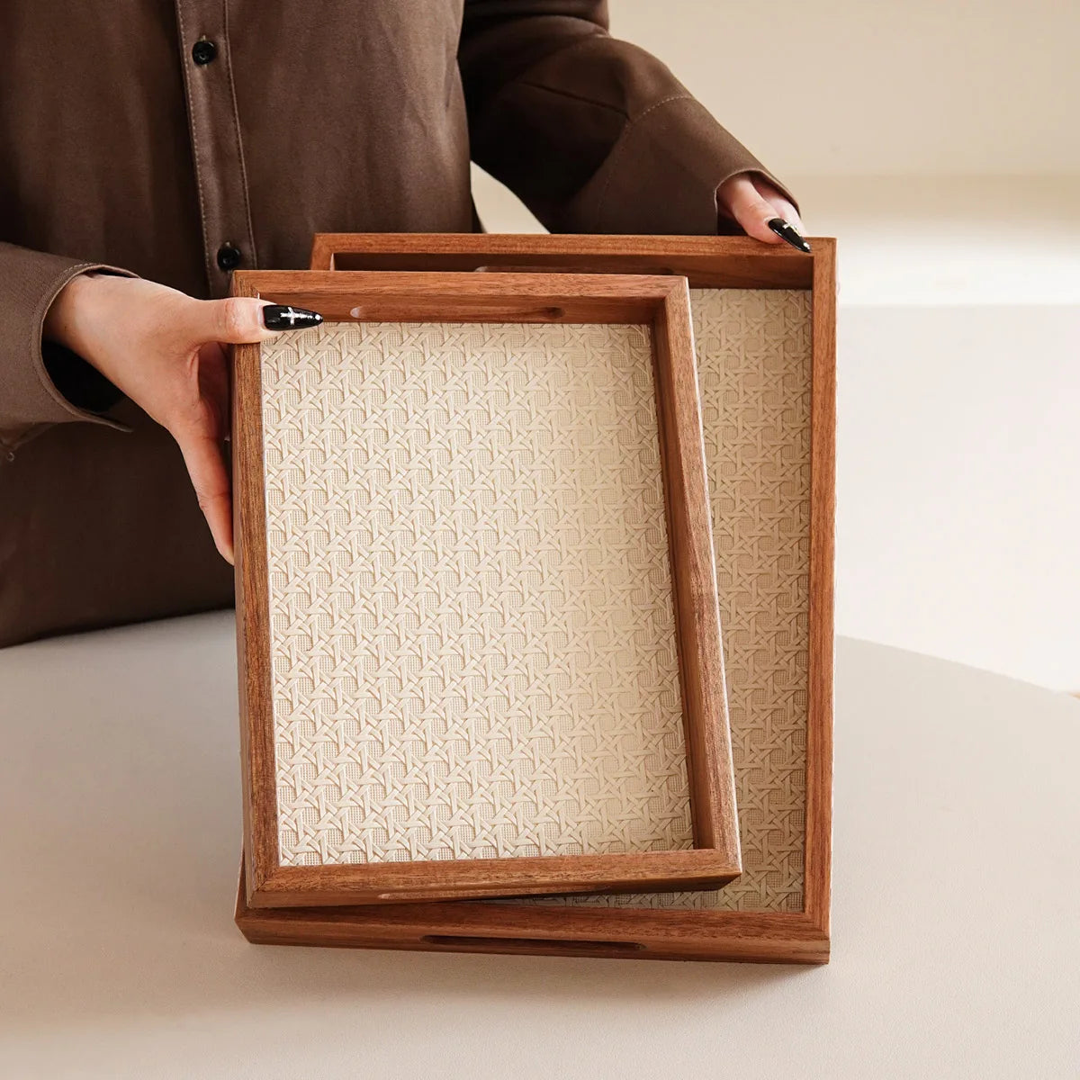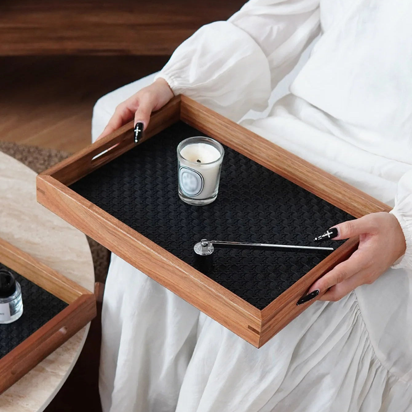 Leder-Tablett mit Bambusmuster & Akazienholz – Dekoratives Schmuck- & Aromatherapie-Tablett für Zuhause & Geschenkideen