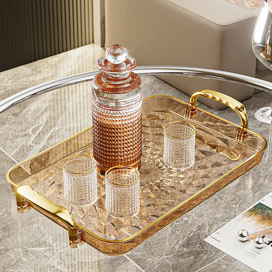 Transparentes Luxus-Serviertablett – Kunststoff Obst- & Desserttablett mit Griff, Dekoratives Aufbewahrungs- & Küchen-Organizer-Tablett