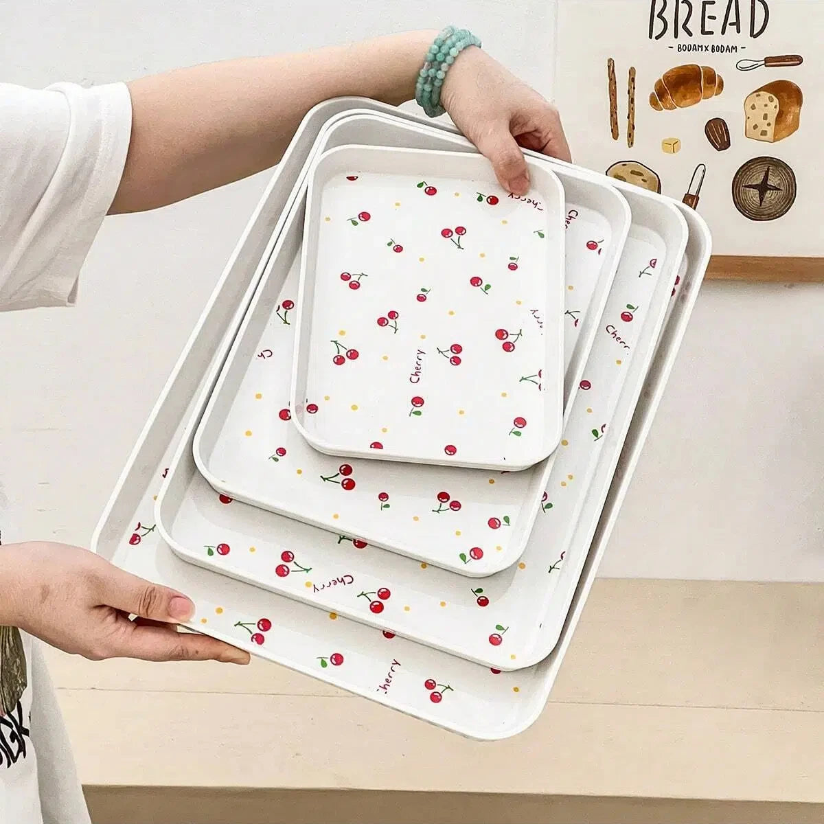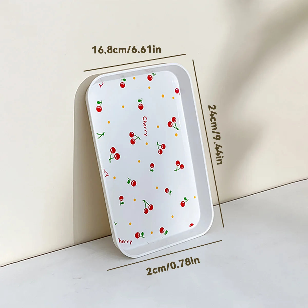 Multifunktionales Kunststoff-Serviertablett mit Kirschmuster – Obst- & Dessertteller, Küchen-Organizer, Parfum- & Schmuckablage