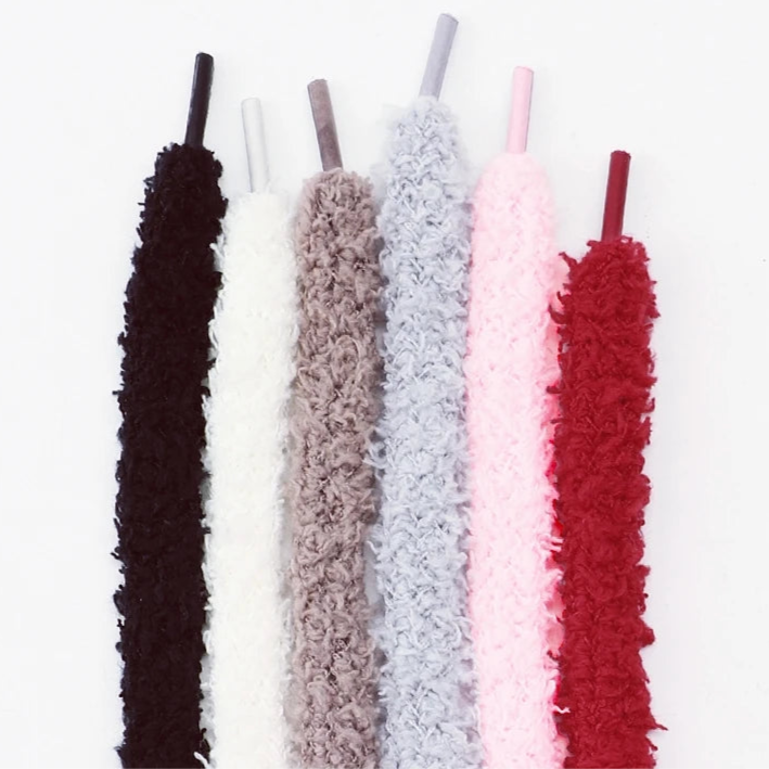Diese Plüsch Schnürsenkel bestehen aus weichen, robusten Fasern, sind in verschiedenen Längen (80–160cm) erhältlich, haben ein 1cm breites rundes Design, bieten sicheren Halt und lange Nutzbarkeit und sind ideal für Sneaker, Freizeitschuhe und Stiefel.