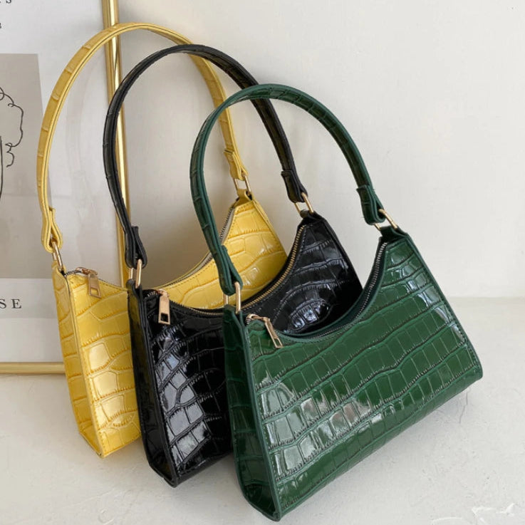 Kleine Retro Leder Shopping Tasche – Modische Einfarbige Ketten Schultertasche | Damen Handtasche Casual