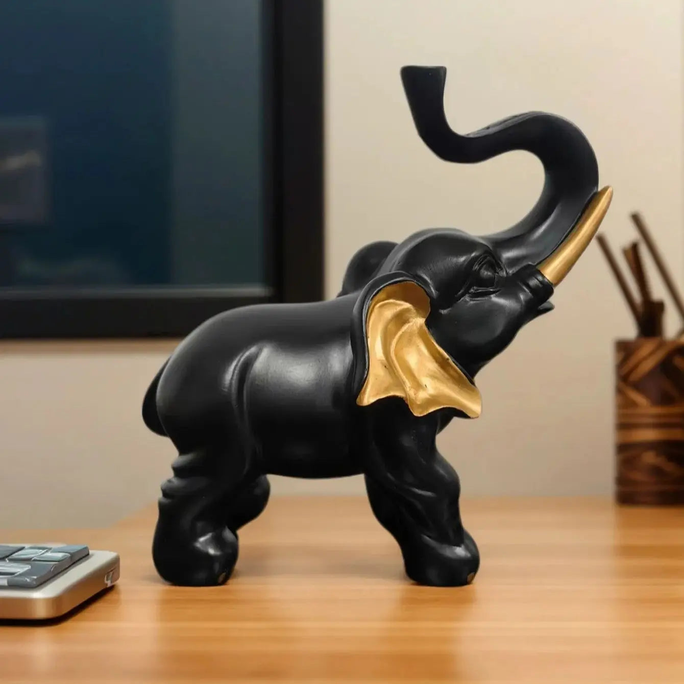 Schwarz-Gold Elefanten Statue – Luxuriöse Kunst-Dekoration für Wohnzimmer und Schreibtisch