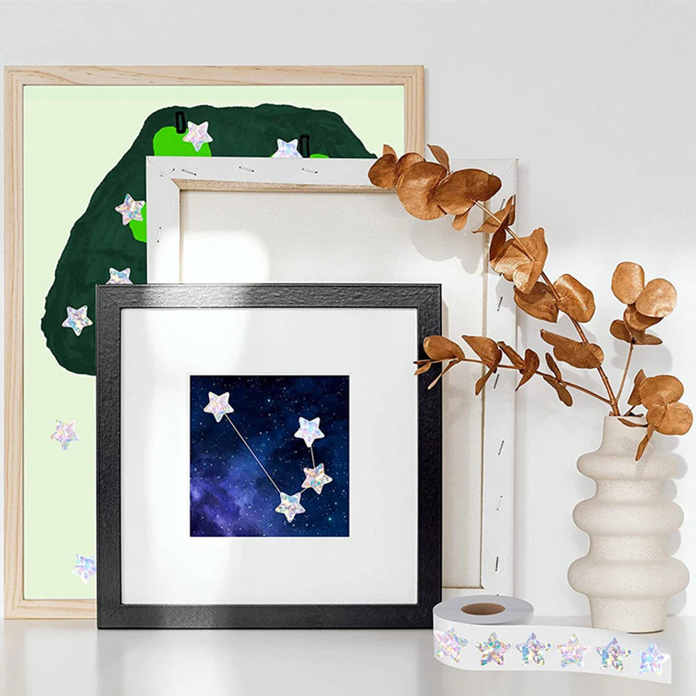 Jeder Stern reflektiert Licht mit einem wunderschönen holografischen Silberglanz – für einen bezaubernden Effekt auf jeder Oberfläche.