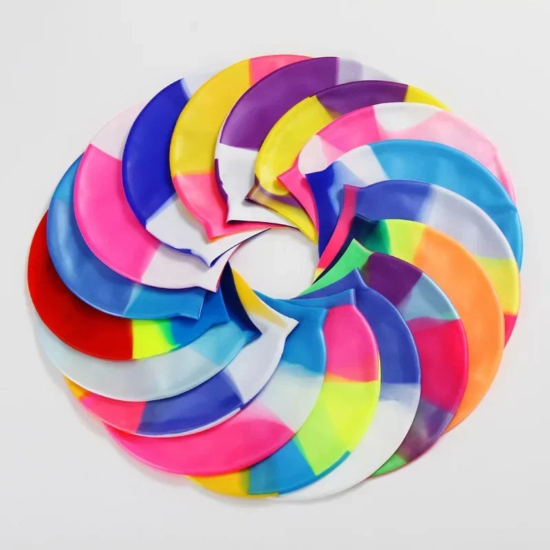 Auffällige, stylische Designs machen die Badekappe zum Hingucker – sportlich, farbig, unisex tragbar.