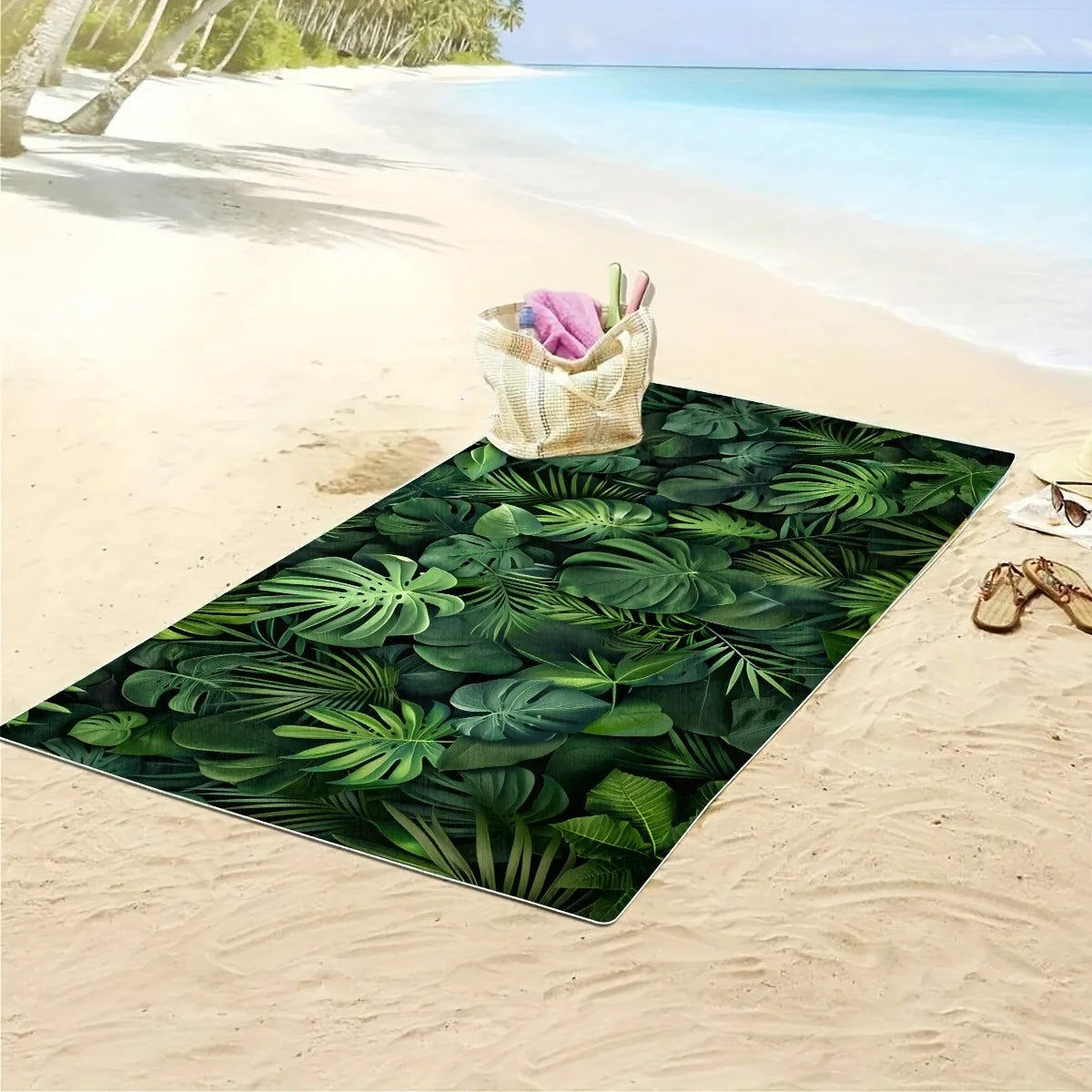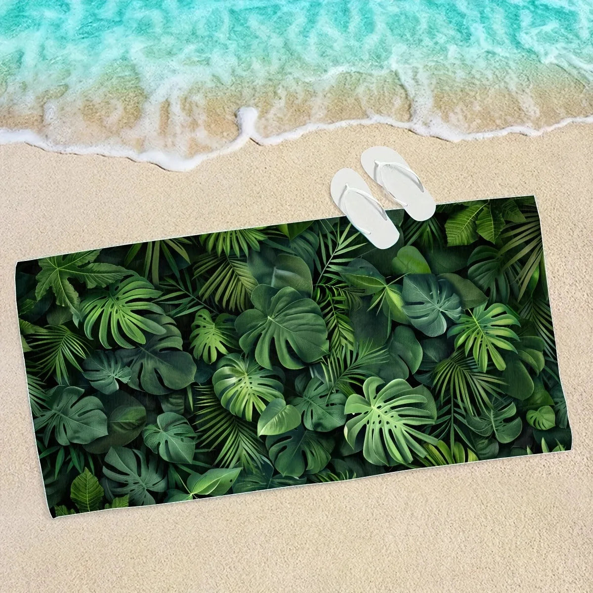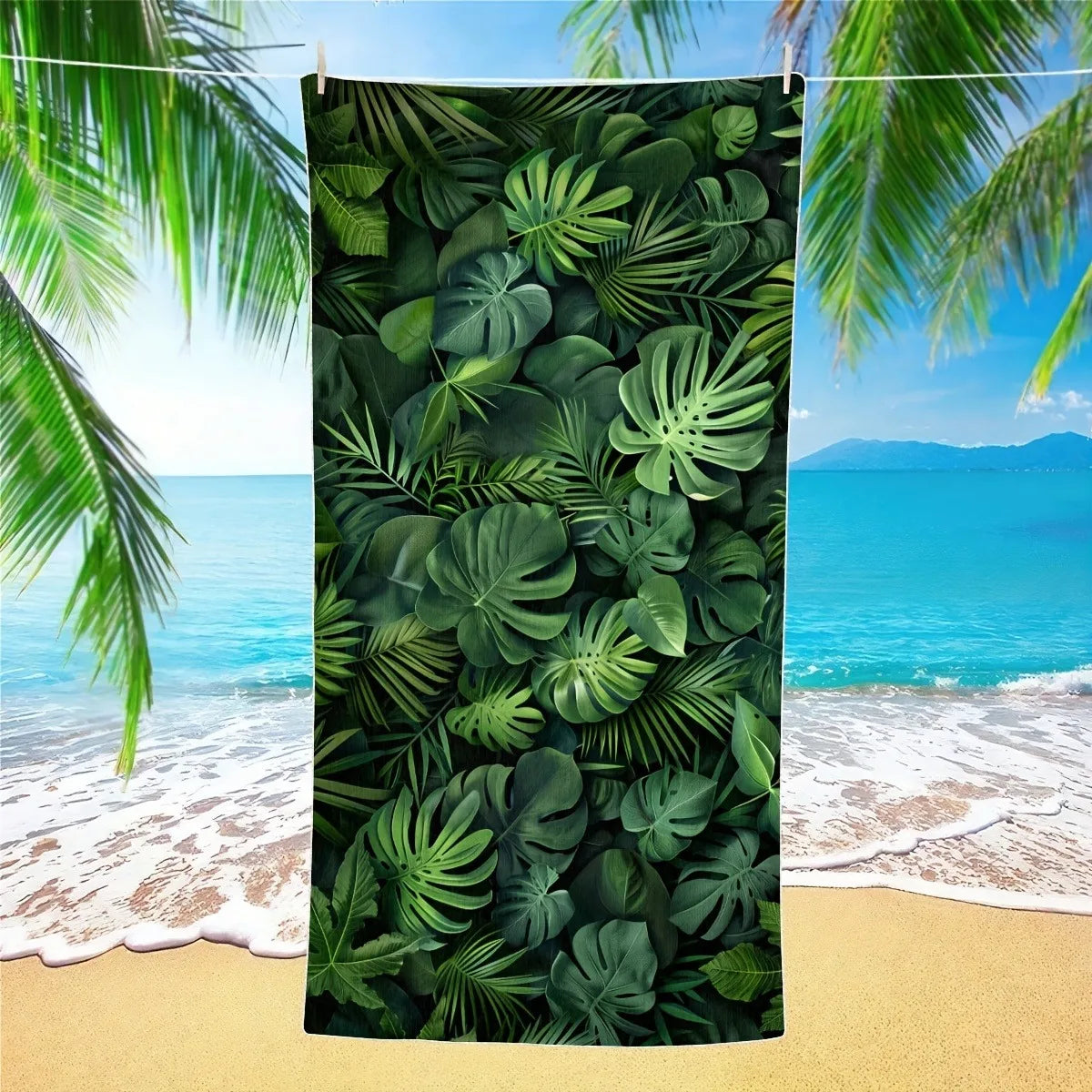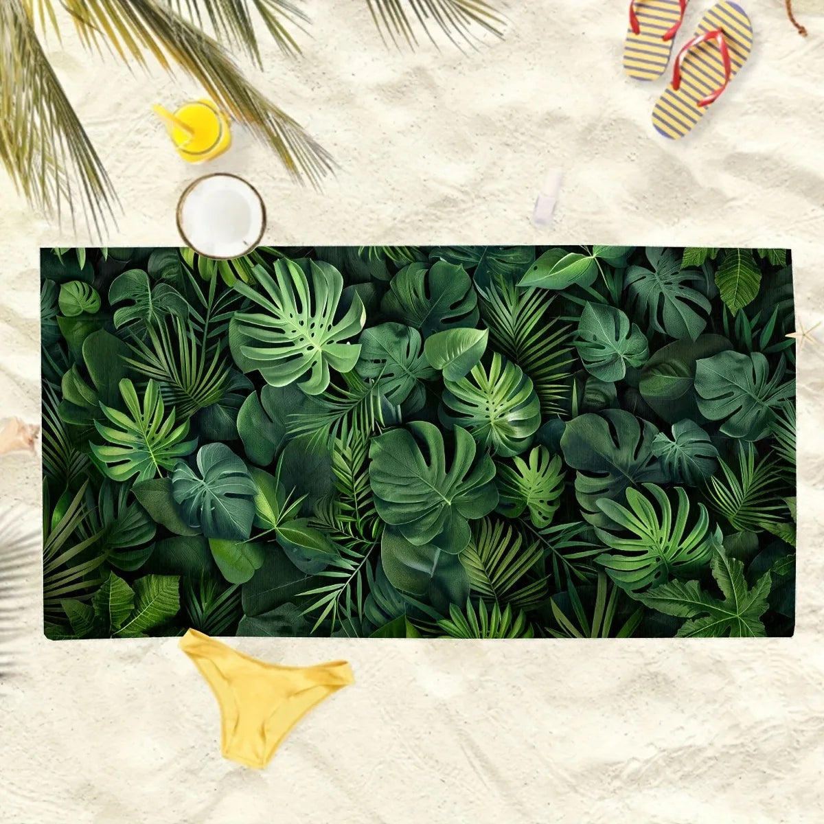 Strandtuch mit Tropischem Blattmuster – Weiches & Saugfähiges Mikrofaser Handtuch | Schnell Trocknend für Strand, Bad & Pool