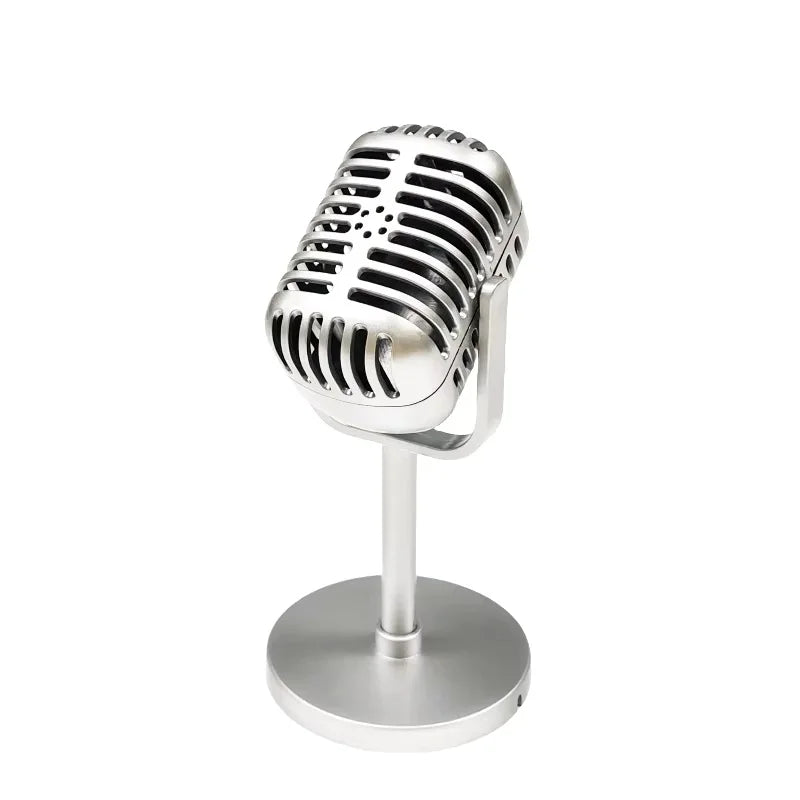 Das Mikrofon überzeugt durch sein klassisches Retro-Design und erinnert an vergangene Musik- und Bühnenzeiten. Es passt perfekt zu Musikthemen, Vintage-Dekorationen und kreativen Raumkonzepten.