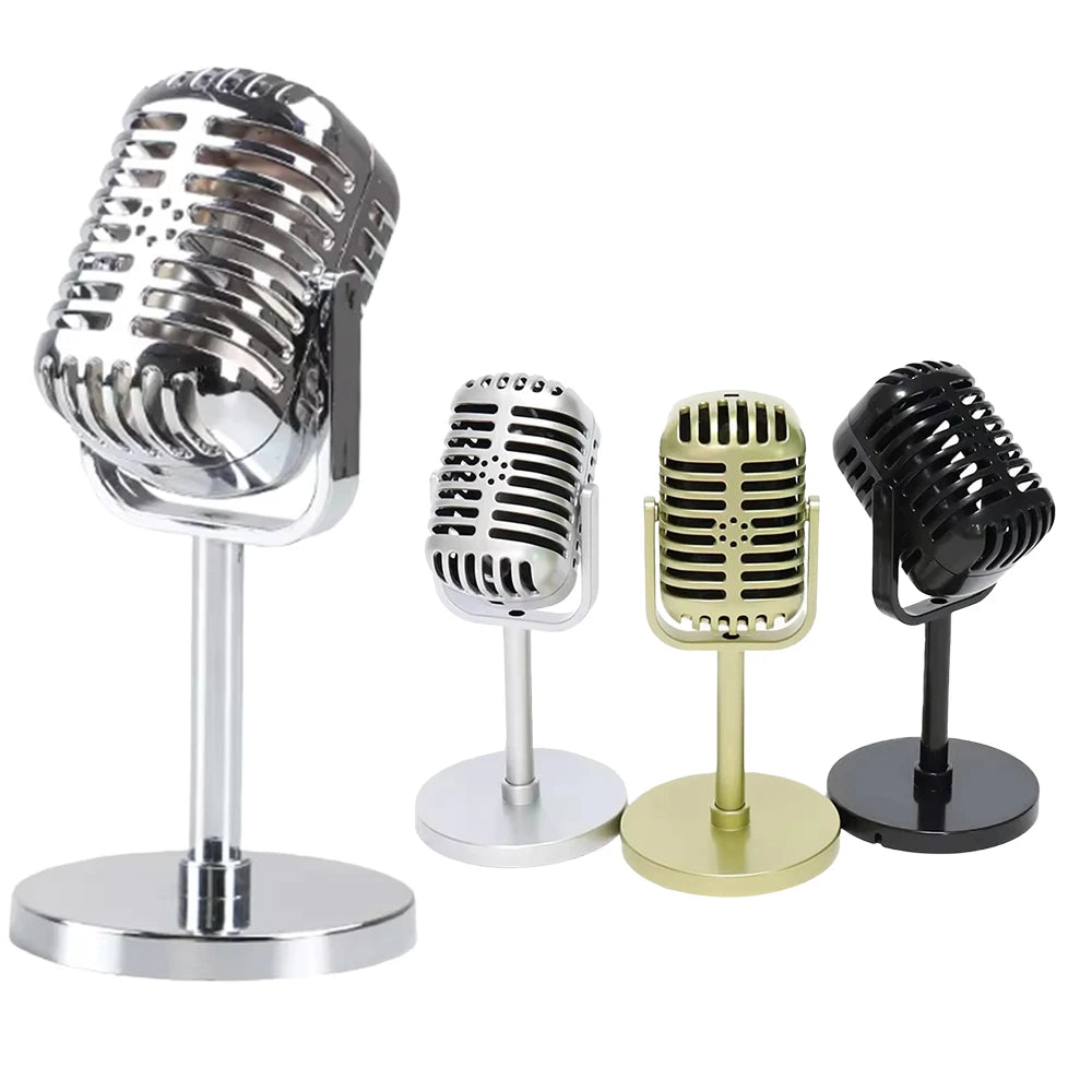 Diese Vintage Mikrofon Requisite ist eine dekorative Nachbildung im Retro-Stil, inspiriert von klassischen Bühnen- und Radiomikrofonen. Sie verleiht Partys, Bühnenbildern und Wohnräumen eine nostalgische Atmosphäre.