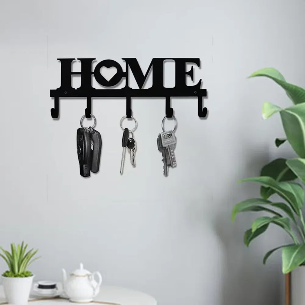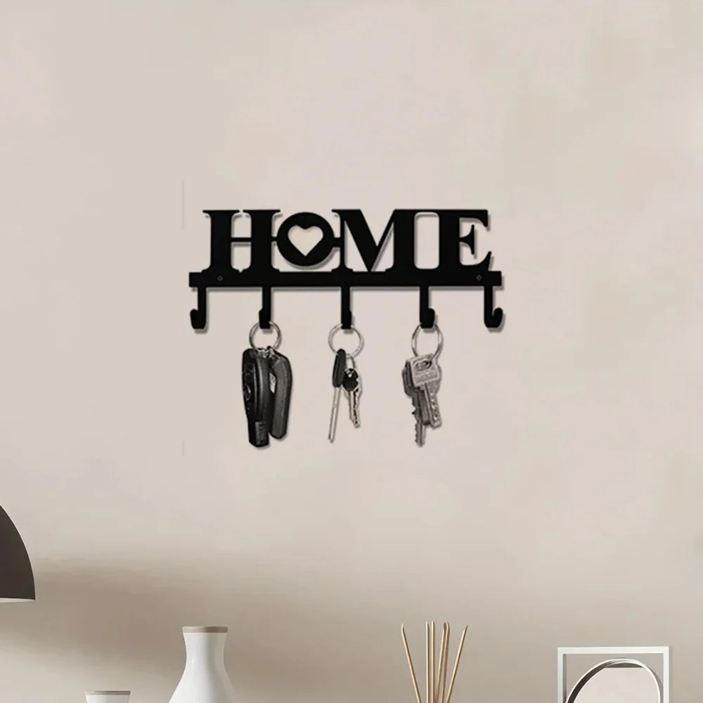 Vintage Schwarzer Metall Schlüsselhalter – Rustikaler Wandhaken Organizer | Dekorative Wandgarderobe für Schlüssel, Jacken & Handtücher