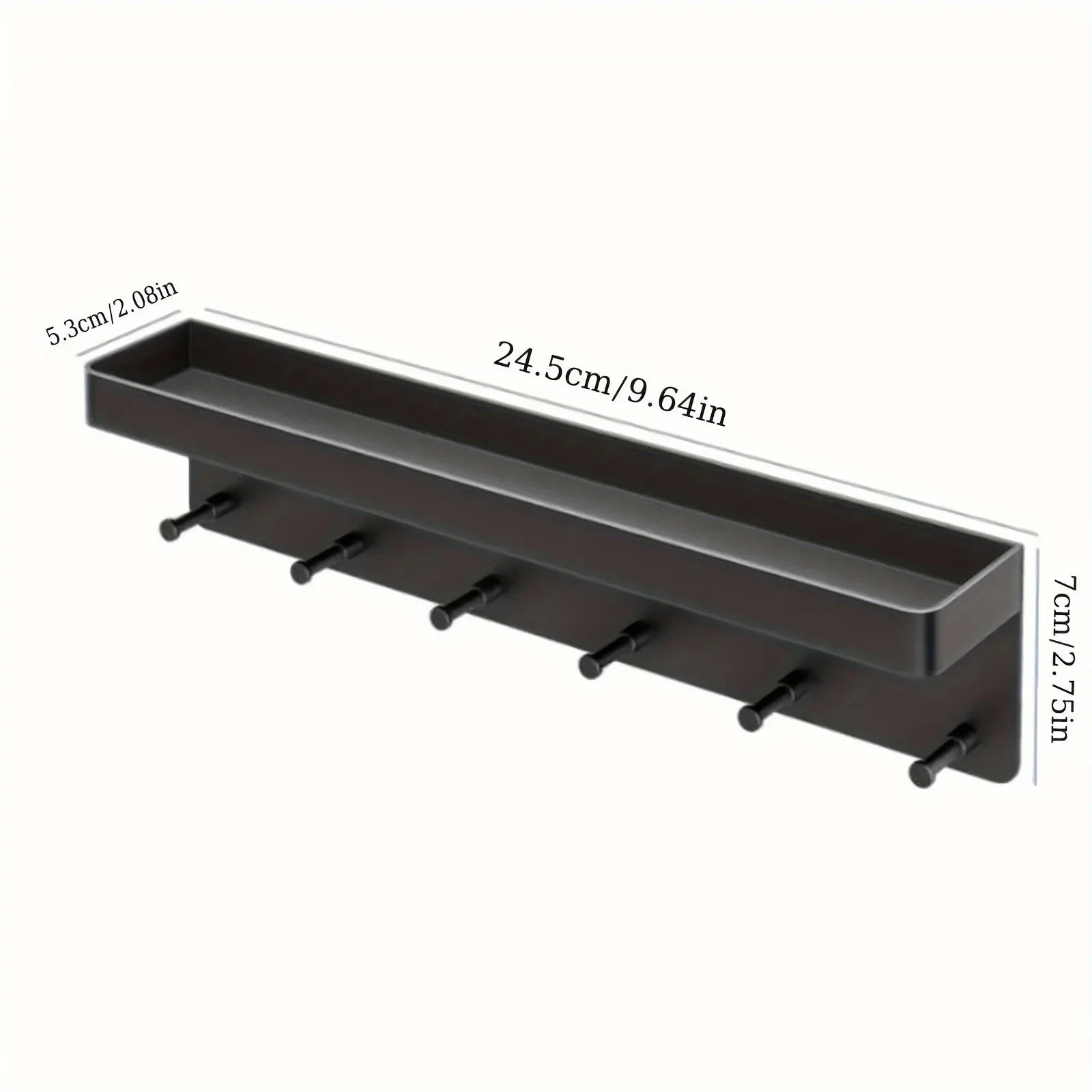 Dieser Wand-Schlüsselhalter mit Ablage vereint Funktionalität und modernes Design. Mit 6 stabilen Haken und einem praktischen Regal bietet er Platz für Schlüssel, Post, Küchenutensilien oder Badaccessoires.