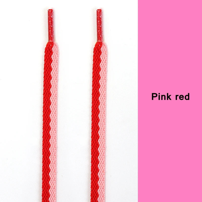 Diese Schnürsenkel haben ein zweifarbiges flaches Design, sind präzise gewebt, bestehen aus robustem Polyester, bieten festen Halt und setzen modische Akzente für Sneaker, AF1 und Freizeitschuhe.